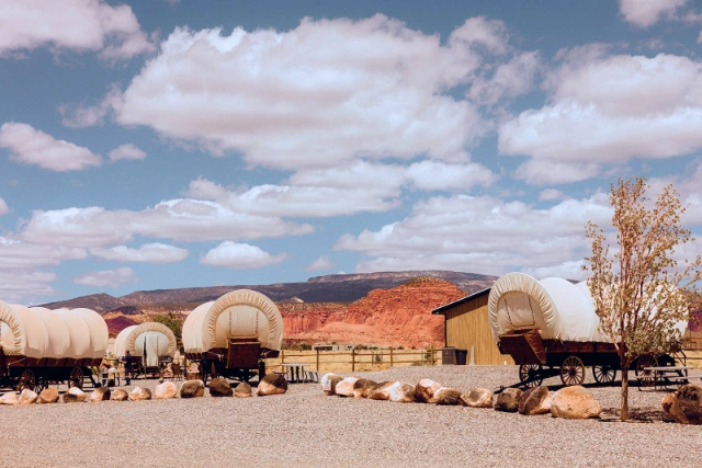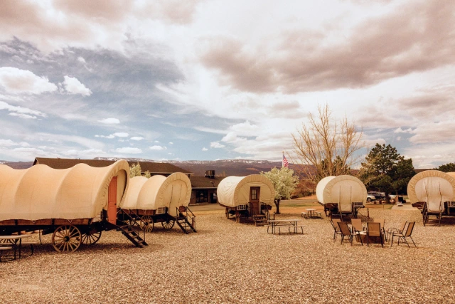 Set against the red rock cliffs of Torrey, Utah, Broken Spur Inn offers a comfortable and memorable stay just 5 minutes from the Capitol Reef National Park entrance. Guests can relax in remodeled guest rooms or book a stay in the property’s signature covered wagons for a truly distinctive lodging experience. With complimentary breakfast, an indoor pool and hot tub, EV charging, and on-site dining at the Broken Spur Steakhouse, the inn combines Western character with modern amenities, making it one of the most convenient and welcoming places to stay near Capitol Reef.