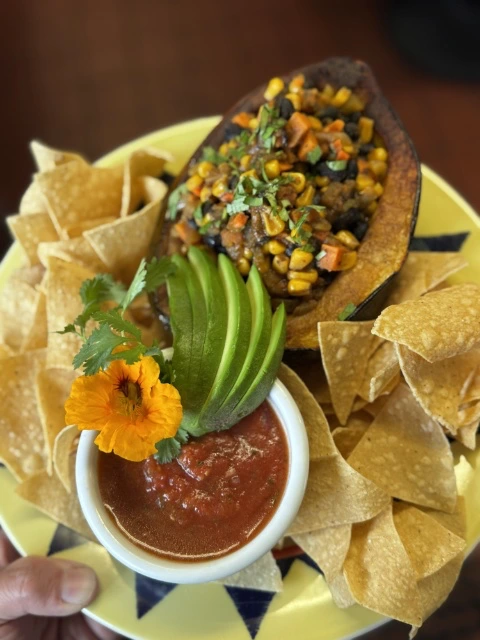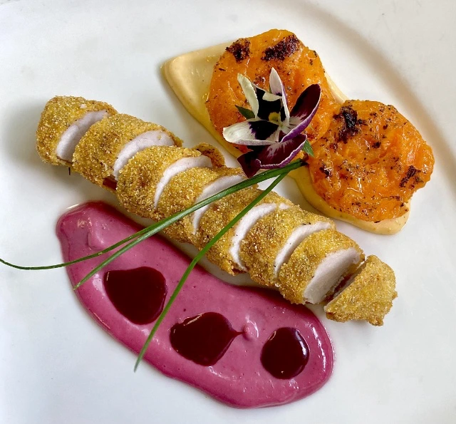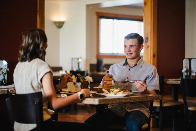 Chef Chet’s seasonally evolving menu reflects a hunter-gatherer sensibility, highlighting wild game, regional produce, and locally sourced bison. Local asparagus and seared antelope often begin the meal, while guest favorites such as elk chimichurri and the Three Sisters vegetable bake showcase a balance of bold flavor and careful technique. Plates arrive like curated landscapes—earth-toned reductions, vibrant greens, and carefully charred textures echoing the terrain.